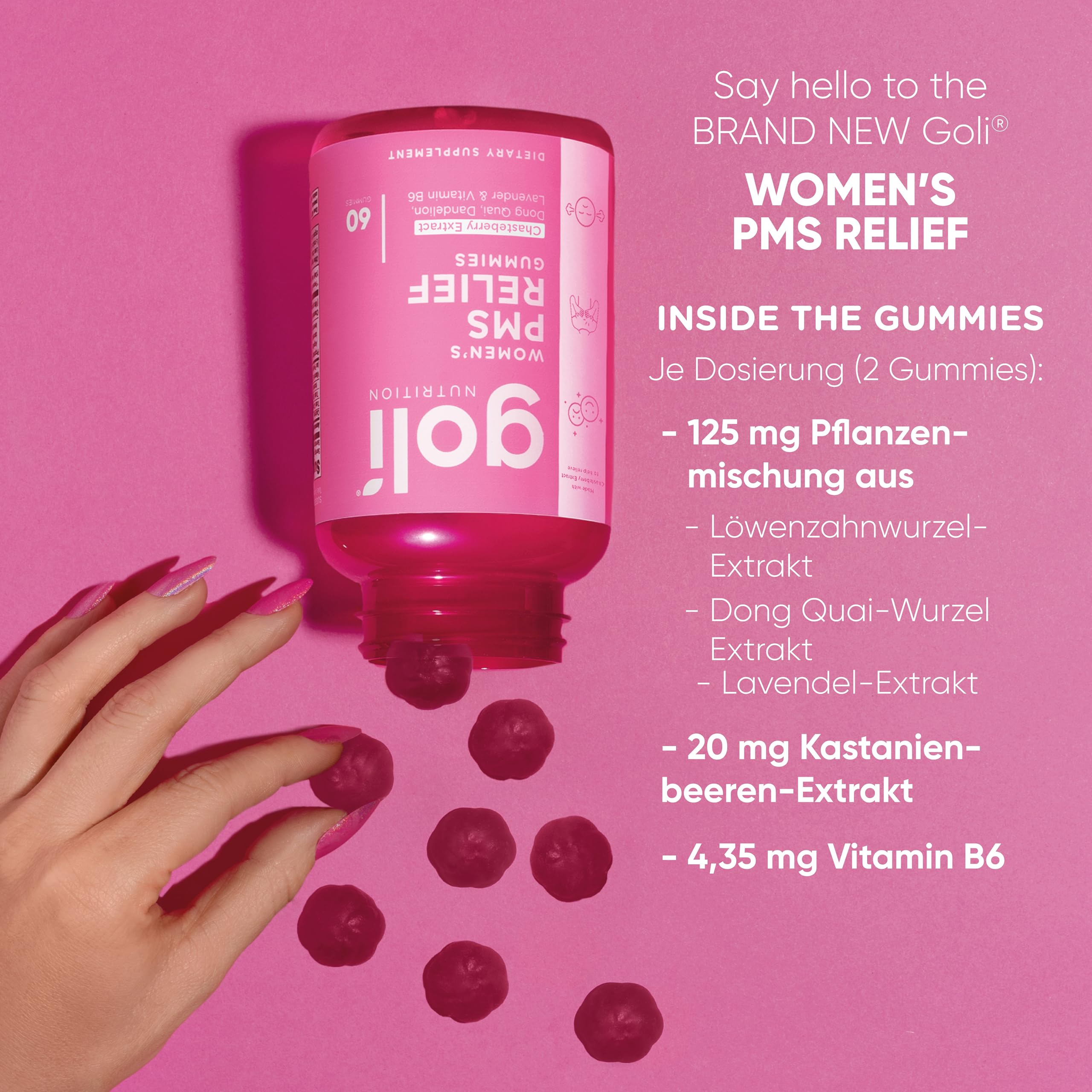 Goli Women's PMS Relief Gummies is Made to help relieve Mood Swings,Breast Tendernes ,Irritability.